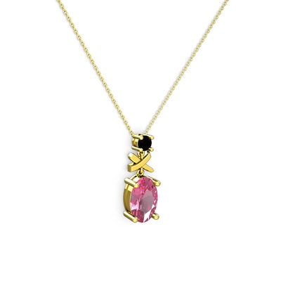 Pembe kuvars ve siyah zirkon 8 ayar altın kolye (40 cm altın rolo zincir)