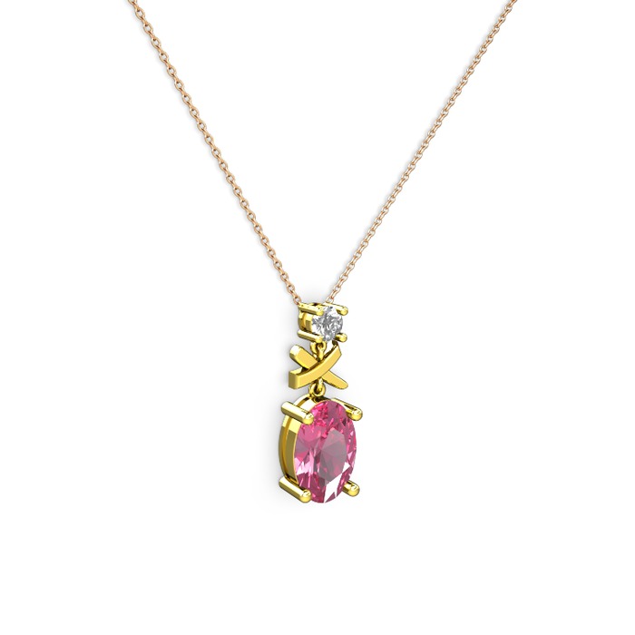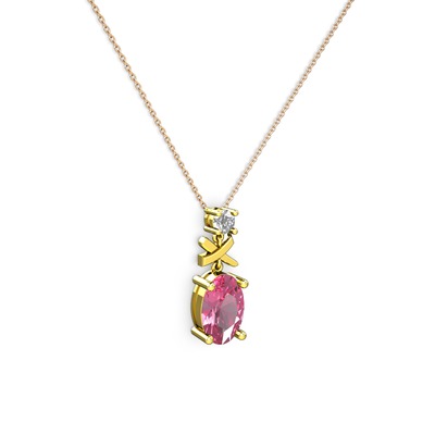 Pembe kuvars ve swarovski 14 ayar altın kolye (40 cm gümüş rolo zincir)