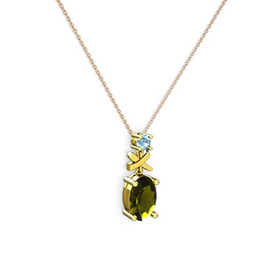 Peridot ve akuamarin 18 ayar altın kolye (40 cm rose altın rolo zincir)