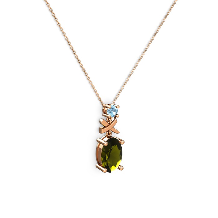 Peridot ve akuamarin 8 ayar rose altın kolye (40 cm rose altın rolo zincir)