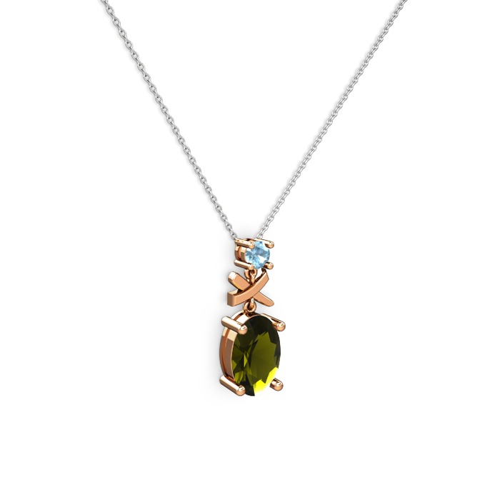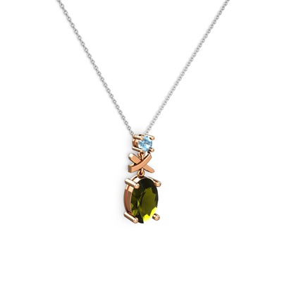 Peridot ve akuamarin 925 ayar rose altın kaplama gümüş kolye (40 cm beyaz altın rolo zincir)