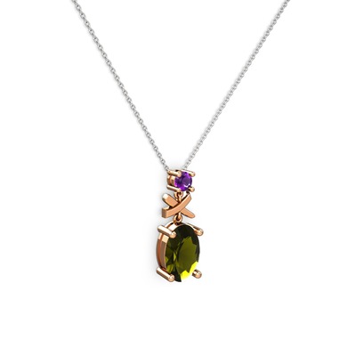 Peridot ve ametist 14 ayar rose altın kolye (40 cm beyaz altın rolo zincir)