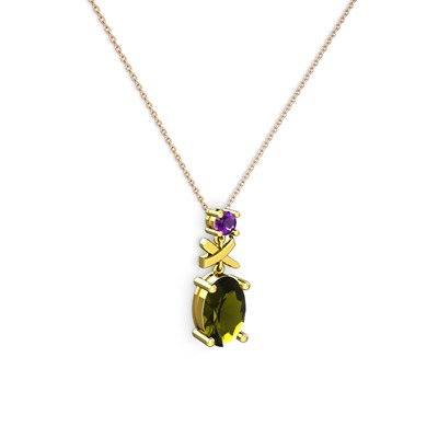 Peridot ve ametist 8 ayar altın kolye (40 cm gümüş rolo zincir)