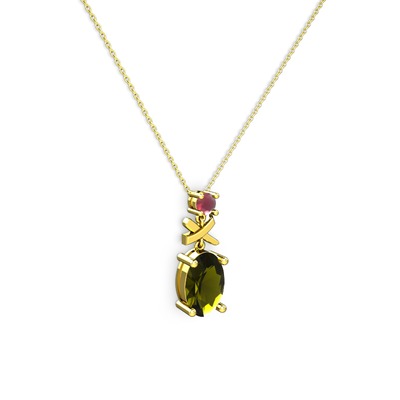 Peridot ve kök yakut 8 ayar altın kolye (40 cm altın rolo zincir)