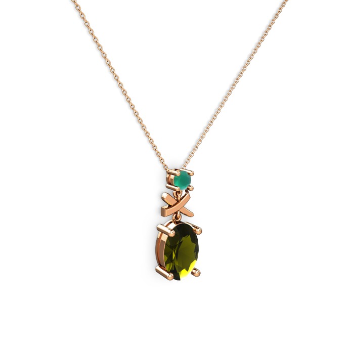 Peridot ve kök zümrüt 14 ayar rose altın kolye (40 cm gümüş rolo zincir)