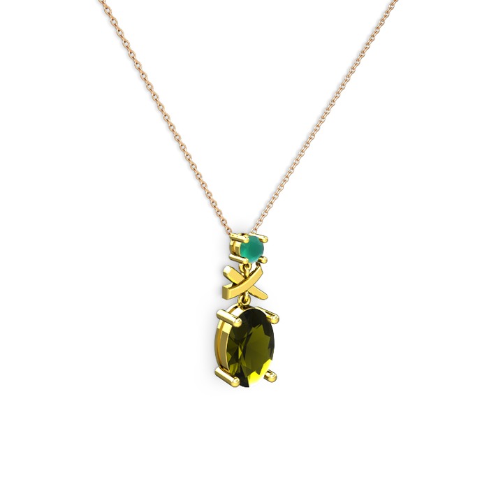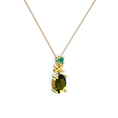 Peridot ve kök zümrüt 8 ayar altın kolye (40 cm rose altın rolo zincir)