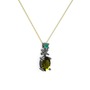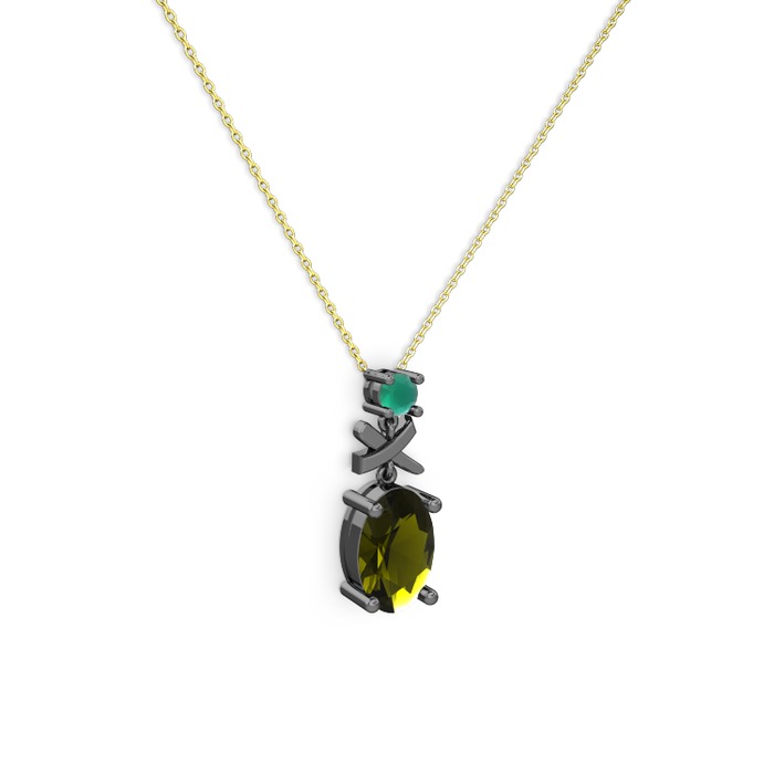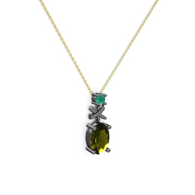 Peridot ve kök zümrüt 925 ayar siyah rodyum kaplama gümüş kolye (40 cm altın rolo zincir)