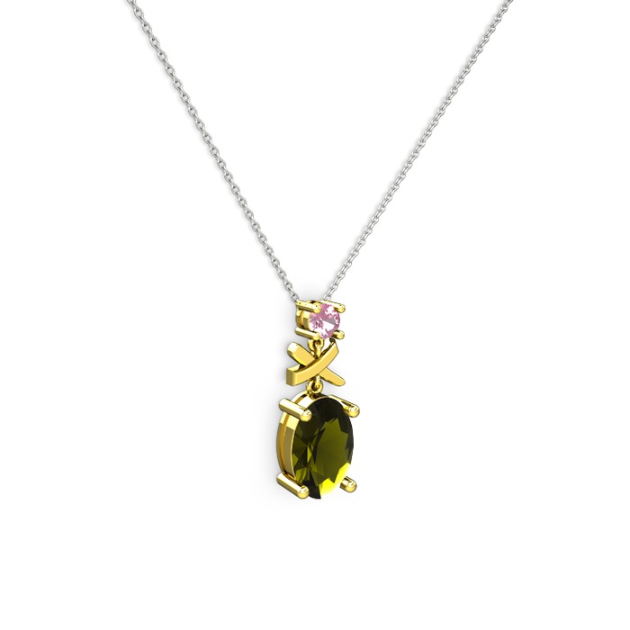 Peridot ve pembe kuvars 18 ayar altın kolye (40 cm gümüş rolo zincir)