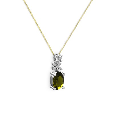Peridot ve pırlanta 18 ayar beyaz altın kolye (0.24 karat, 40 cm altın rolo zincir)