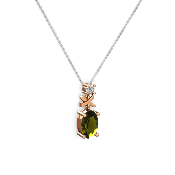 Peridot ve pırlanta 925 ayar rose altın kaplama gümüş kolye (0.24 karat, 40 cm gümüş rolo zincir)