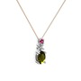 Peridot ve rodolit garnet 14 ayar beyaz altın kolye (40 cm rose altın rolo zincir)
