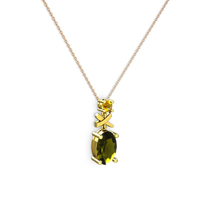 Peridot ve sitrin 14 ayar altın kolye (40 cm gümüş rolo zincir)