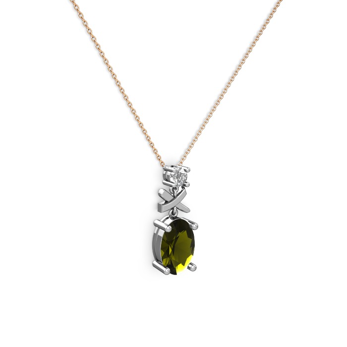 Peridot ve swarovski 925 ayar gümüş kolye (40 cm rose altın rolo zincir)