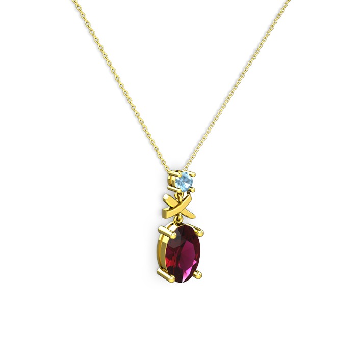 Rodolit garnet ve akuamarin 18 ayar altın kolye (40 cm gümüş rolo zincir)