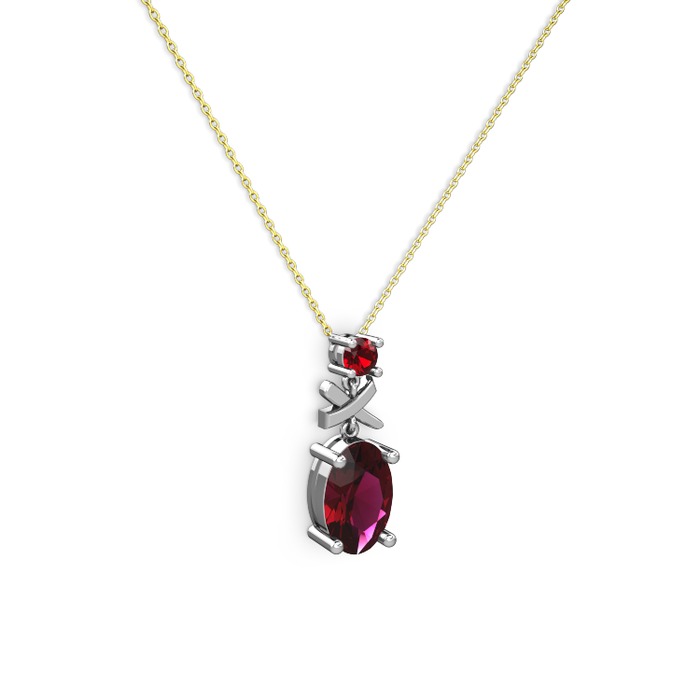 Rodolit garnet ve garnet 14 ayar beyaz altın kolye (40 cm gümüş rolo zincir)