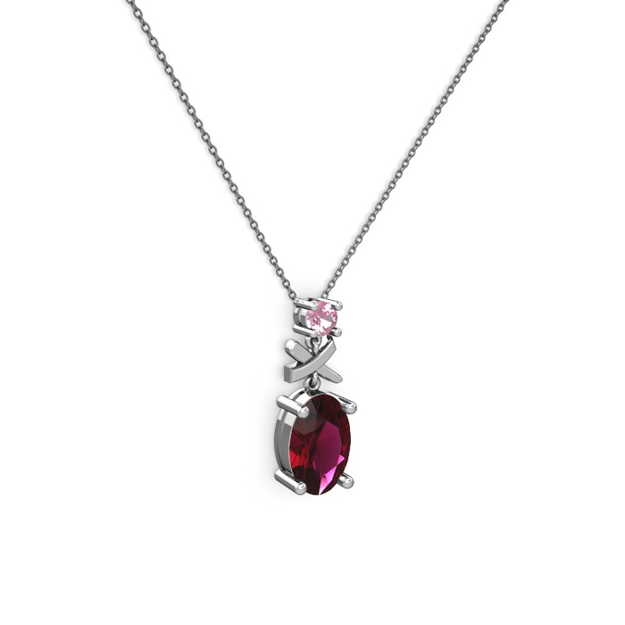 Rodolit garnet ve pembe kuvars 14 ayar beyaz altın kolye (40 cm gümüş rolo zincir)