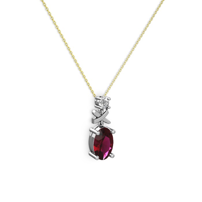 Rodolit garnet ve pırlanta 14 ayar beyaz altın kolye (0.24 karat, 40 cm altın rolo zincir)