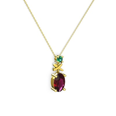 Rodolit garnet ve yeşil kuvars 14 ayar altın kolye (40 cm altın rolo zincir)
