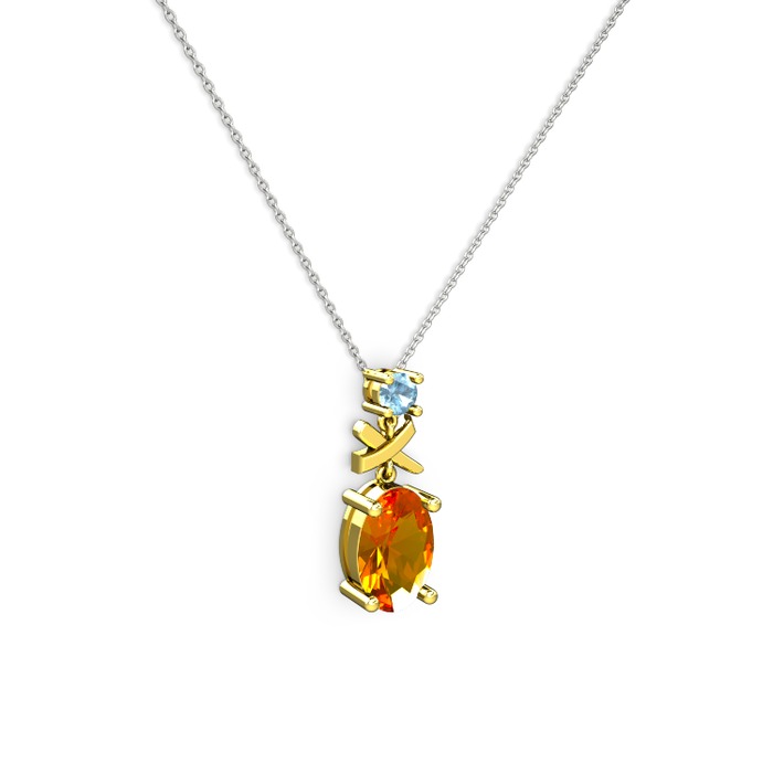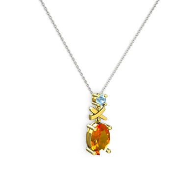 Sitrin ve akuamarin 14 ayar altın kolye (40 cm beyaz altın rolo zincir)