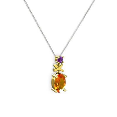 Sitrin ve ametist 14 ayar altın kolye (40 cm gümüş rolo zincir)