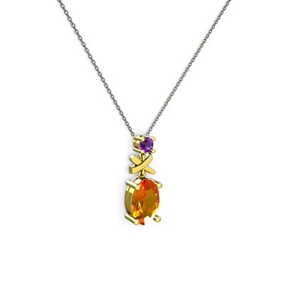 Sitrin ve ametist 18 ayar altın kolye (40 cm gümüş rolo zincir)