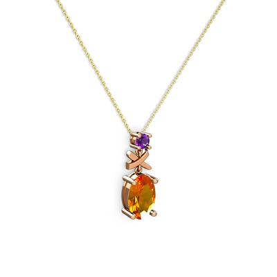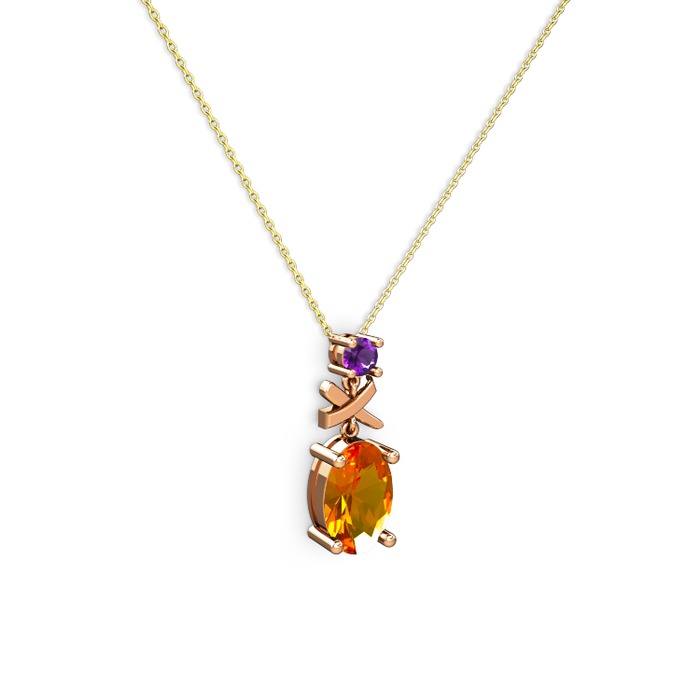 Sitrin ve ametist 8 ayar rose altın kolye (40 cm altın rolo zincir)