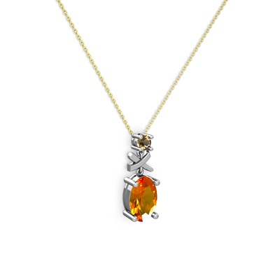 Sitrin ve dumanlı kuvars 8 ayar beyaz altın kolye (40 cm altın rolo zincir)