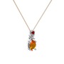 Sitrin ve garnet 14 ayar beyaz altın kolye (40 cm gümüş rolo zincir)