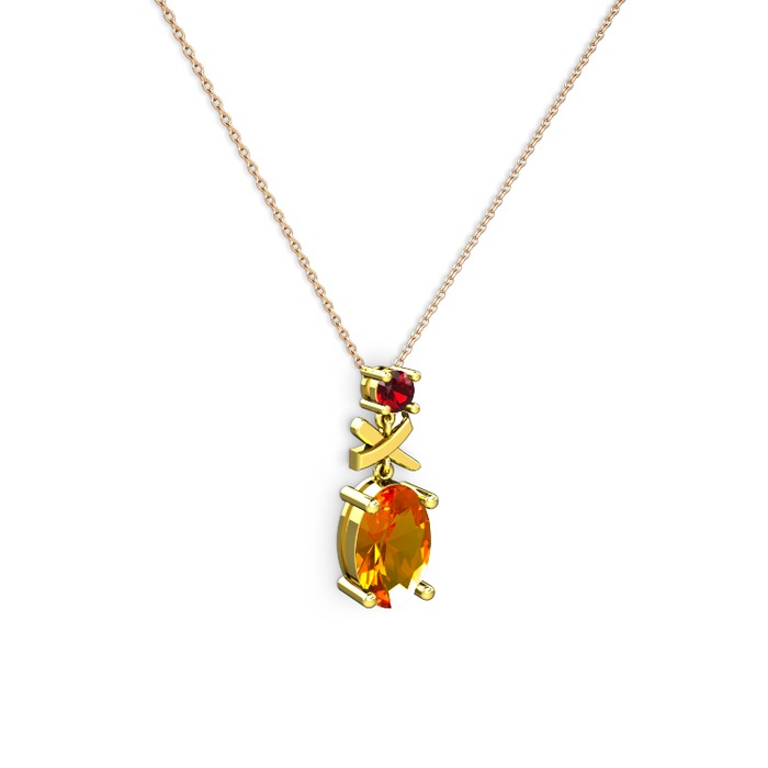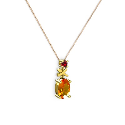 Sitrin ve garnet 8 ayar altın kolye (40 cm rose altın rolo zincir)