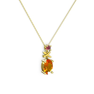 Sitrin ve kök yakut 14 ayar altın kolye (40 cm altın rolo zincir)