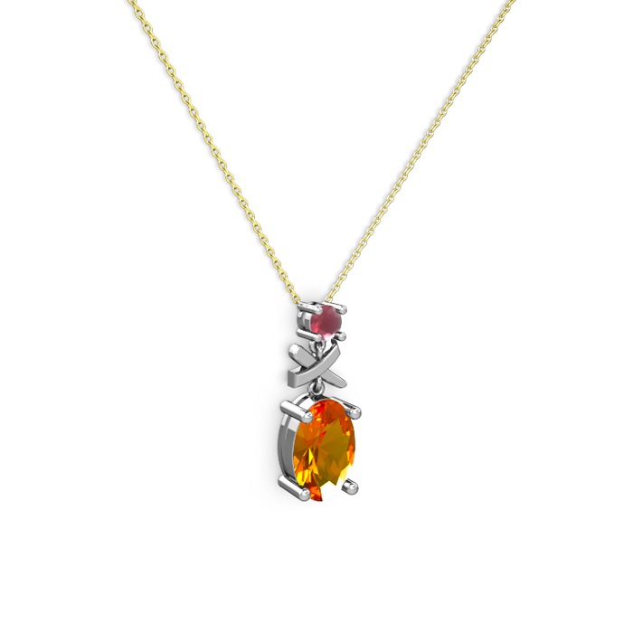 Sitrin ve kök yakut 14 ayar beyaz altın kolye (40 cm altın rolo zincir)