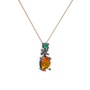 Sitrin ve kök zümrüt 925 ayar siyah rodyum kaplama gümüş kolye (40 cm rose altın rolo zincir)