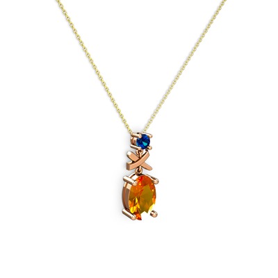 Sitrin ve lab safir 18 ayar rose altın kolye (40 cm altın rolo zincir)