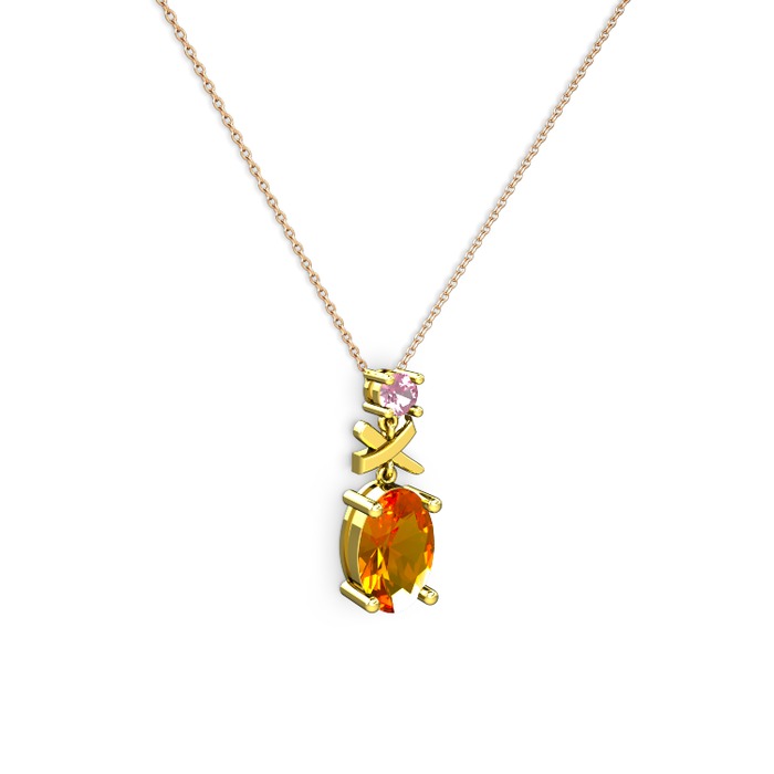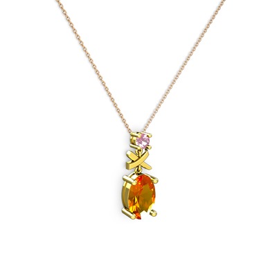 Sitrin ve pembe kuvars 8 ayar altın kolye (40 cm rose altın rolo zincir)