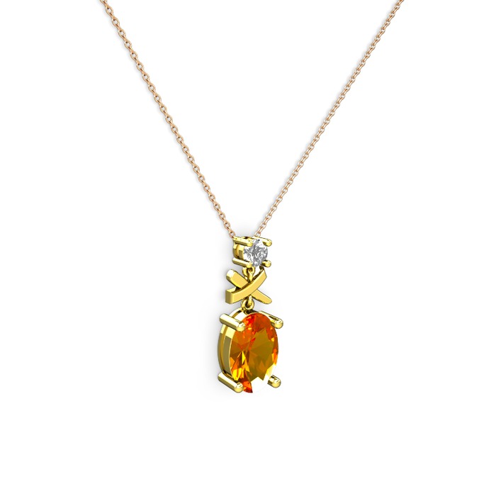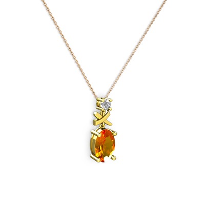 Sitrin ve pırlanta 14 ayar altın kolye (0.24 karat, 40 cm rose altın rolo zincir)