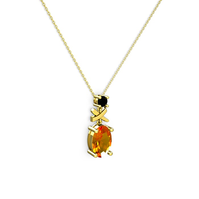 Sitrin ve siyah zirkon 8 ayar altın kolye (40 cm altın rolo zincir)