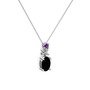 Siyah zirkon ve ametist 18 ayar beyaz altın kolye (40 cm beyaz altın rolo zincir)