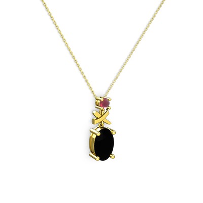 Siyah zirkon ve kök yakut 8 ayar altın kolye (40 cm altın rolo zincir)