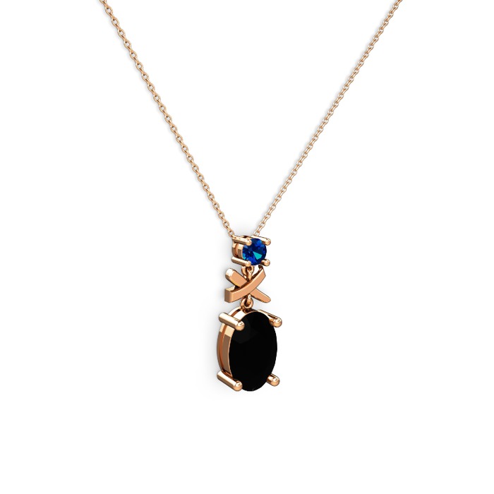 Siyah zirkon ve lab safir 18 ayar rose altın kolye (40 cm rose altın rolo zincir)
