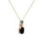 Siyah zirkon ve yeşil kuvars 14 ayar rose altın kolye (40 cm gümüş rolo zincir)