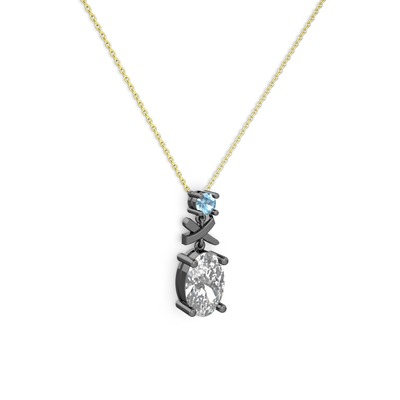 Swarovski ve akuamarin 925 ayar siyah rodyum kaplama gümüş kolye (40 cm altın rolo zincir)