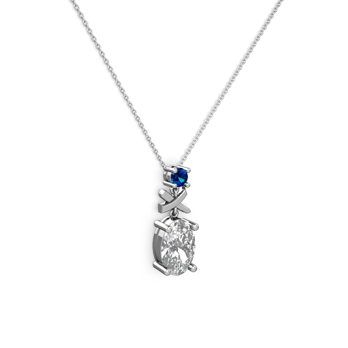 Swarovski ve lab safir 8 ayar beyaz altın kolye (40 cm beyaz altın rolo zincir)