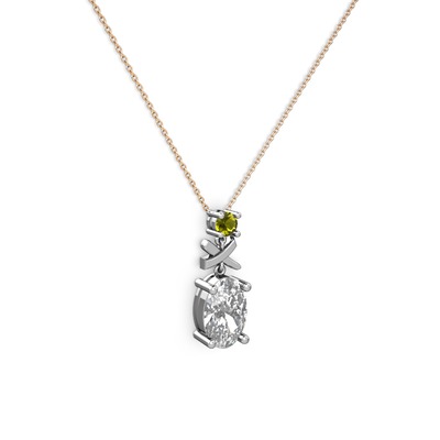 Swarovski ve peridot 14 ayar beyaz altın kolye (40 cm rose altın rolo zincir)