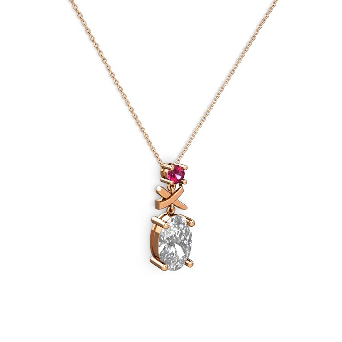 Swarovski ve rodolit garnet 8 ayar rose altın kolye (40 cm gümüş rolo zincir)
