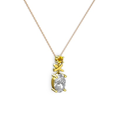 Swarovski ve sitrin 14 ayar altın kolye (40 cm rose altın rolo zincir)