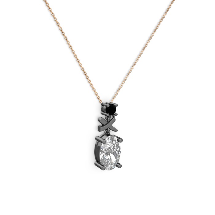 Swarovski ve siyah zirkon 925 ayar siyah rodyum kaplama gümüş kolye (40 cm rose altın rolo zincir)