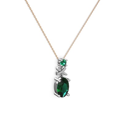 Yeşil kuvars 18 ayar beyaz altın kolye (40 cm gümüş rolo zincir)