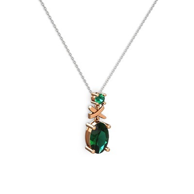 Yeşil kuvars 18 ayar rose altın kolye (40 cm beyaz altın rolo zincir)