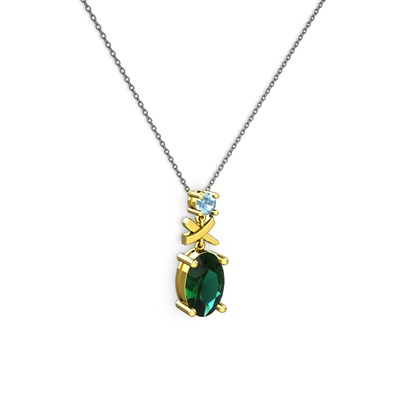 Yeşil kuvars ve akuamarin 18 ayar altın kolye (40 cm gümüş rolo zincir)