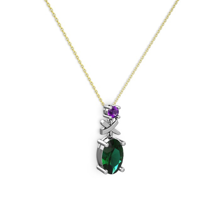 Yeşil kuvars ve ametist 14 ayar beyaz altın kolye (40 cm altın rolo zincir)